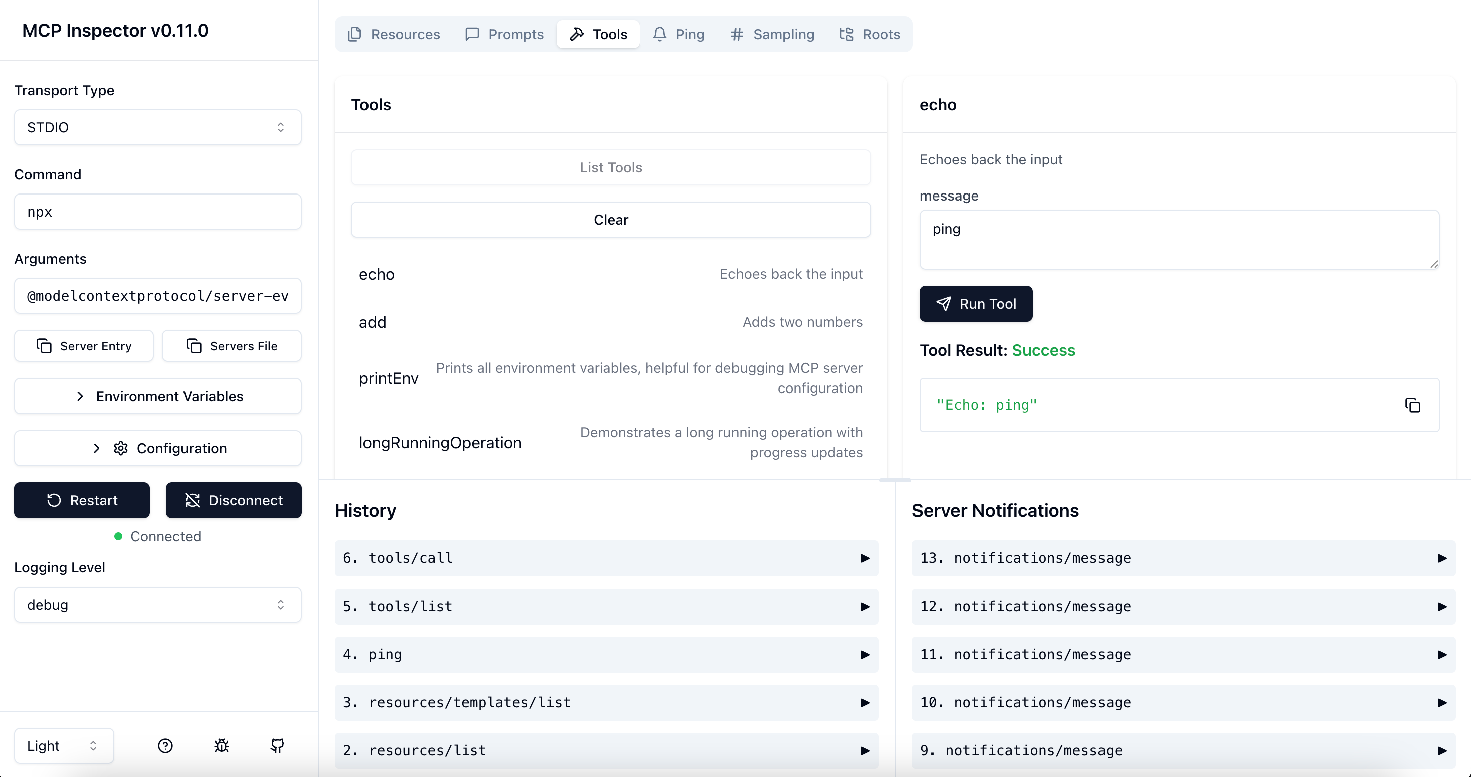 The Anthropic inspector lets you connect to any MCP server to test out things like Tools, Prompts, Resources. It supports connecting to STDIO and SSE/HTTP servers. There’s also a great feature to test out your server’s OAuth flow. The inspector is a great place to start, but I think it’s not a pleasing tool to use and I find it lagging behind the protocol. For example, they didn’t support elicitation for the longest time.