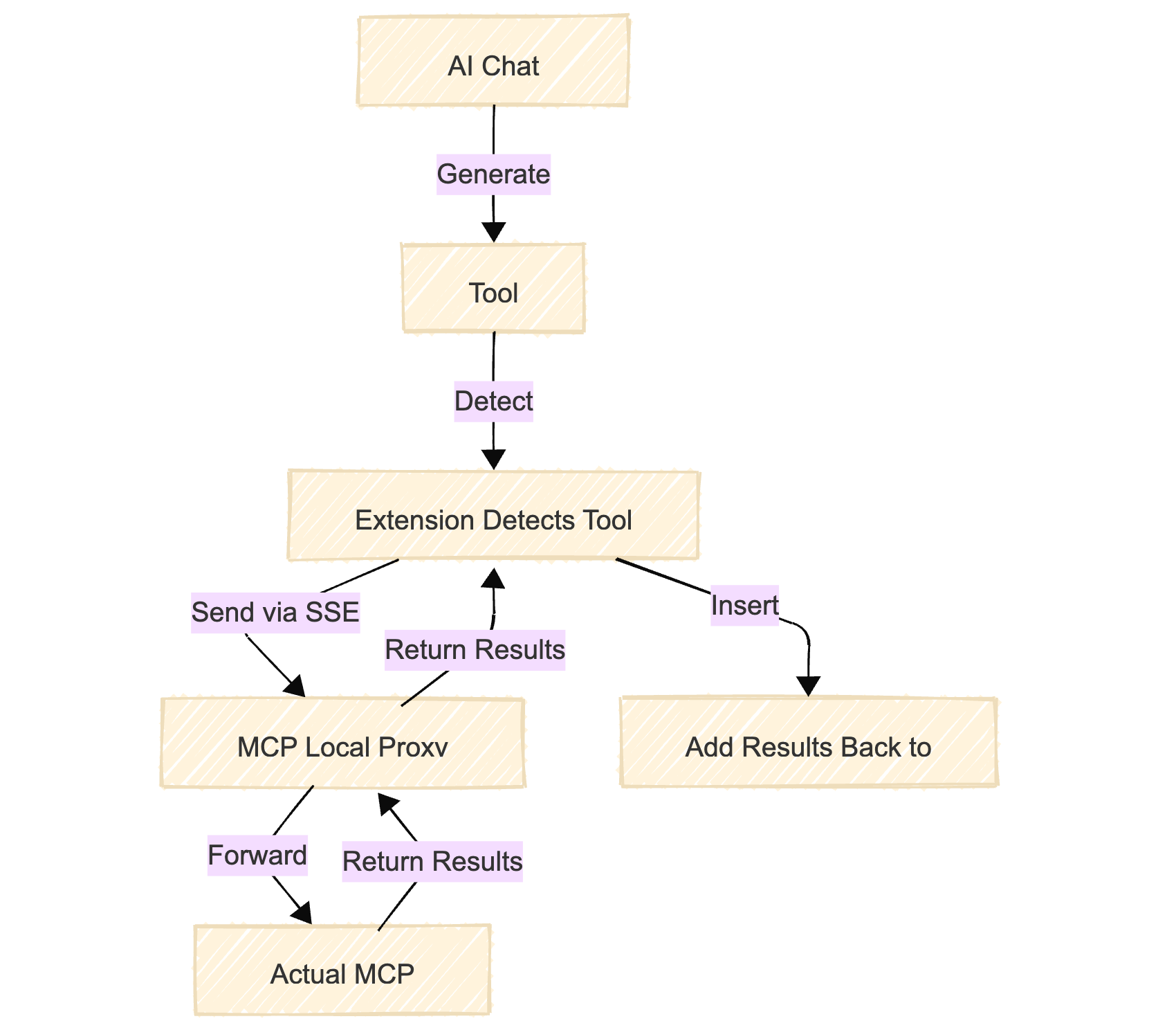 When a user interacts with their AI client of choice, MCP SuperAssistant detects the tool call and finds the related MCP server.